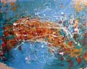 If I weren't a simple human being, maybe I could fly like your fish with their wings, that direct life far beyond the mirage, beyond the blue horizon. But for us, remains only the learning of your works, hallucinated dyes in search of attentions, caress on canvas, happiness in love.